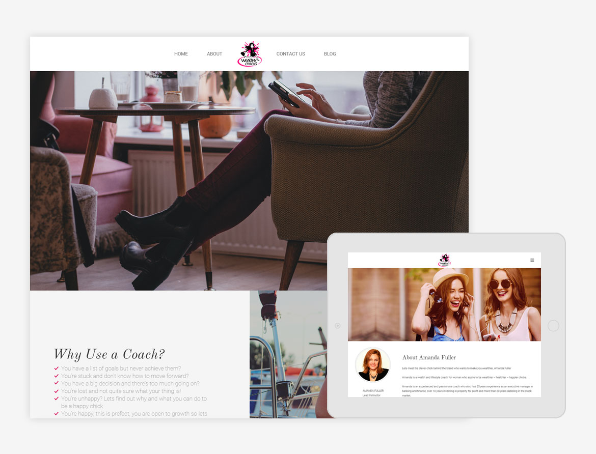Wealthy Chicks is a brand owned and operated by Amanda, she coaches and motivates other women to start their own business and live a healthy, wealthy and happy life. She wanted to keep the brand feminine and less serious, so she named it Wealthy Chicks.